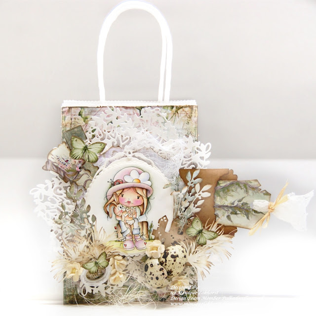 Make a gorgeous gift bag using Holly Spring Bunny digital stamp...